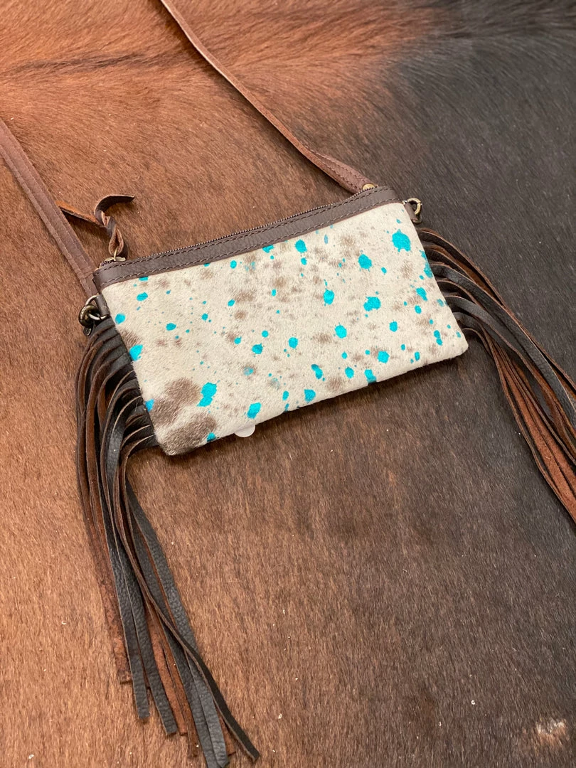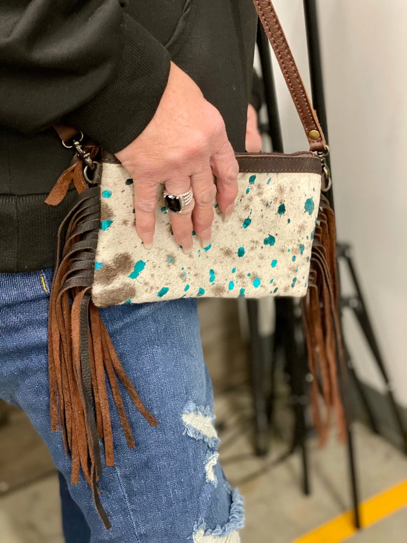 - Tan, Dark Brown, & Teal Leather Cowhair & Leather