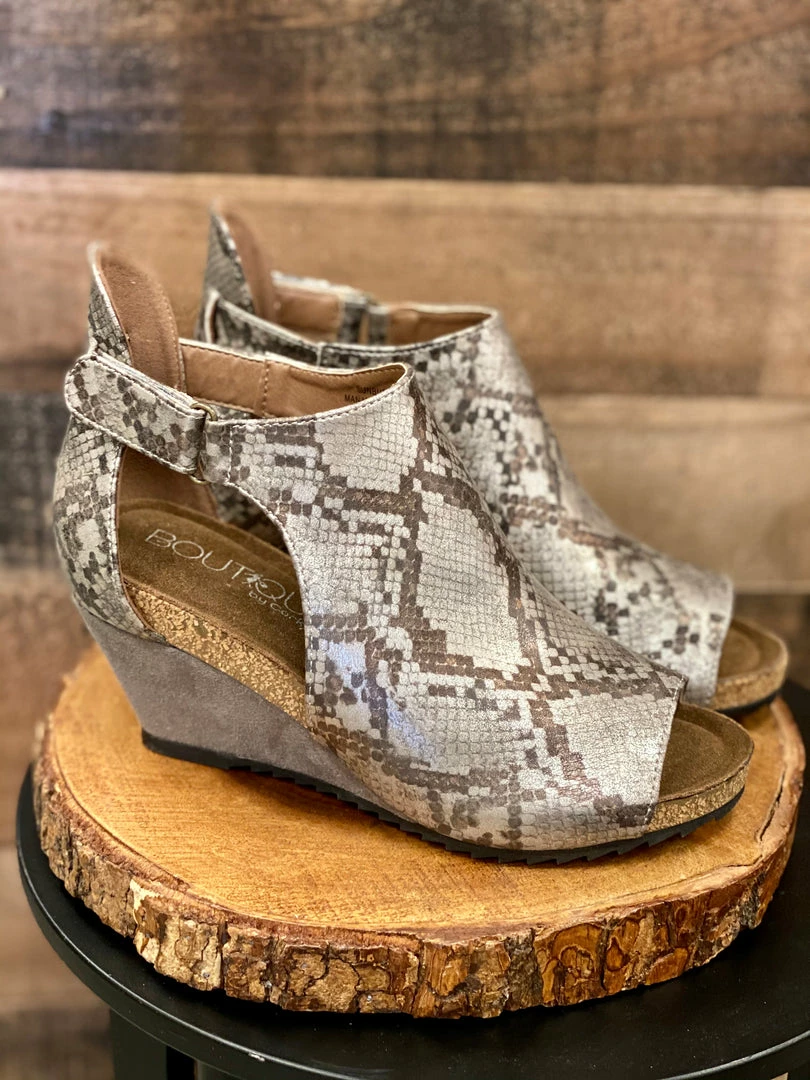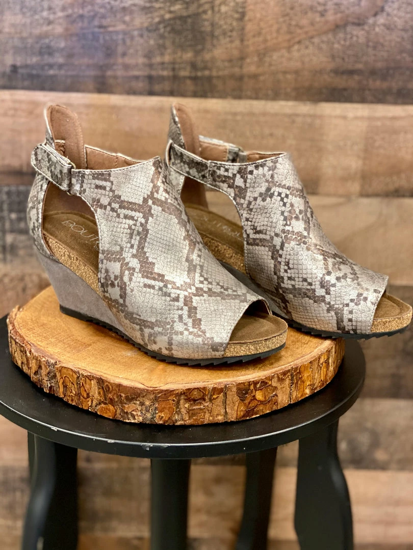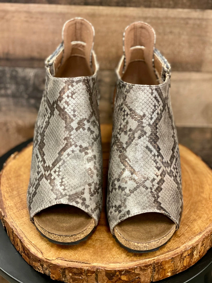 Be the first to review “Corky Sunburst II Taupe Snake Wedge” Cancel reply