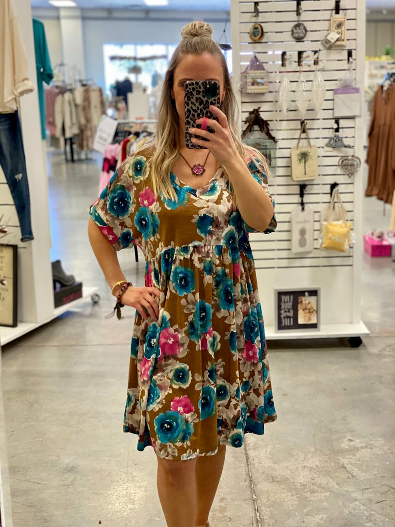 Brown Background With Pops Of Blue, Magenta, & More Floral Design