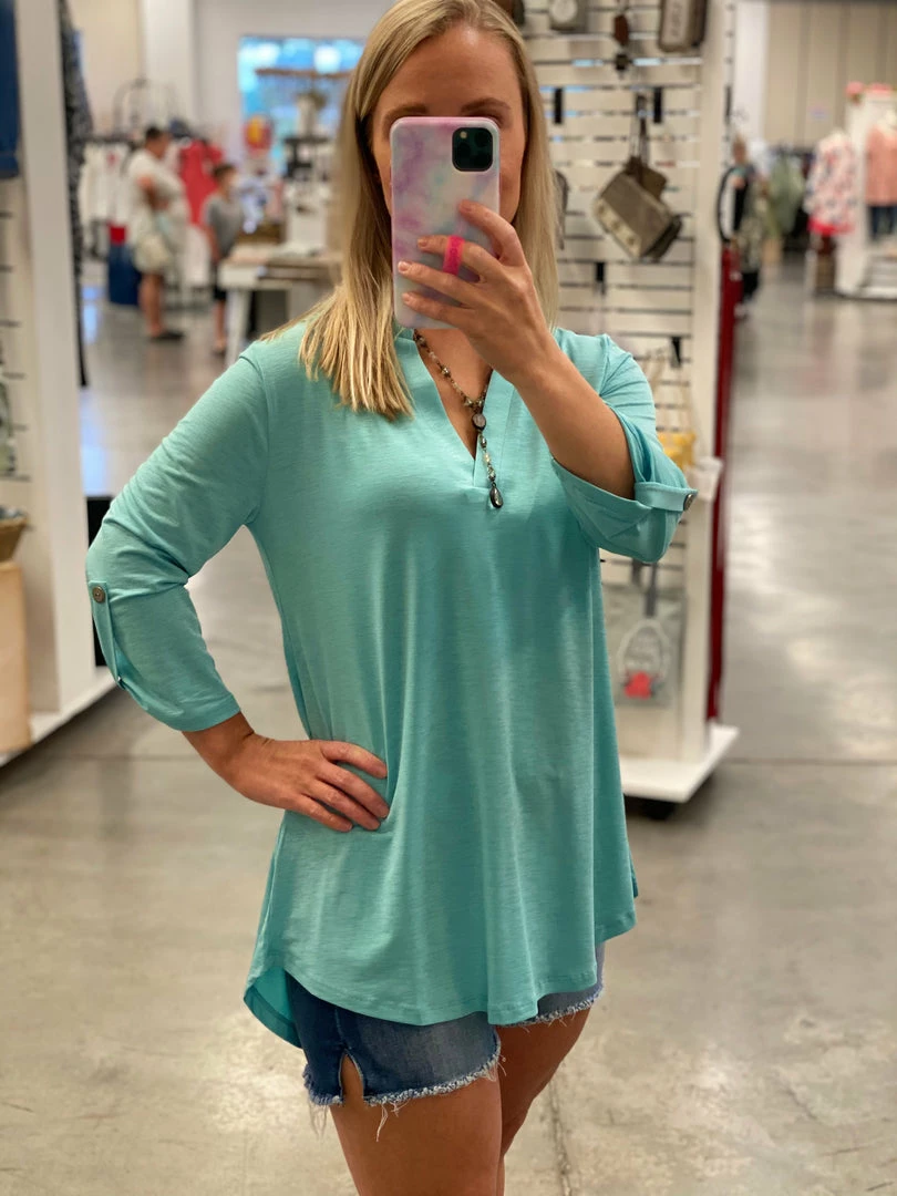 - 3/4 Length Sleeve With Roll-Up & Button Detail