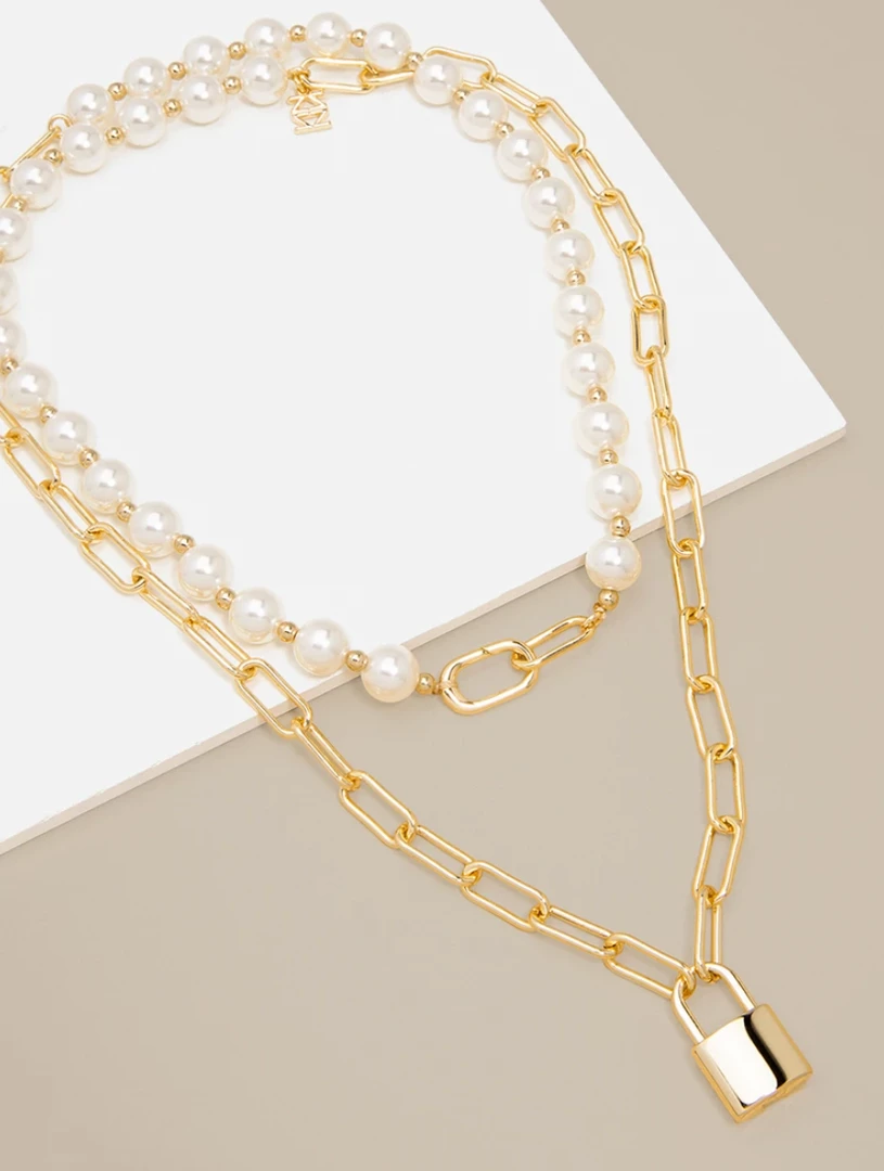 - Necklace With Paperclip Links, Pearls, & Lock Charm
