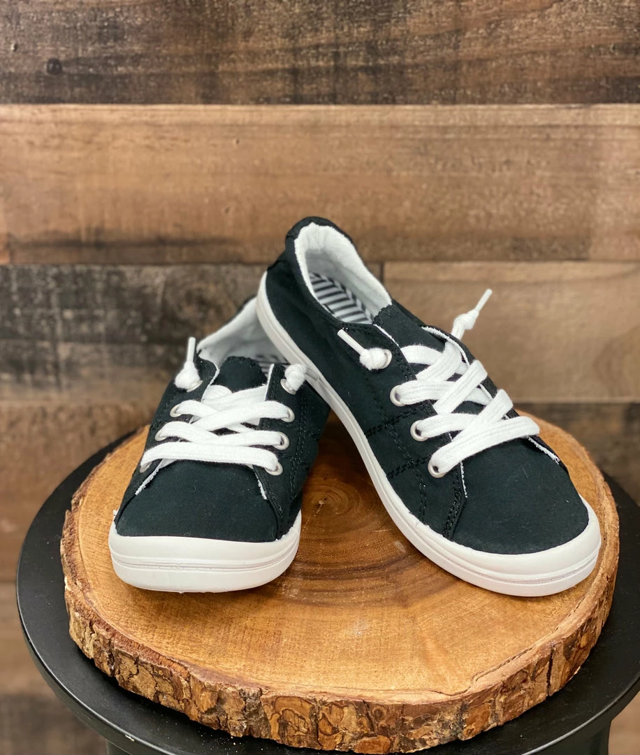 - Black Canvas Slip-On Sneaker With White Rubber Sole