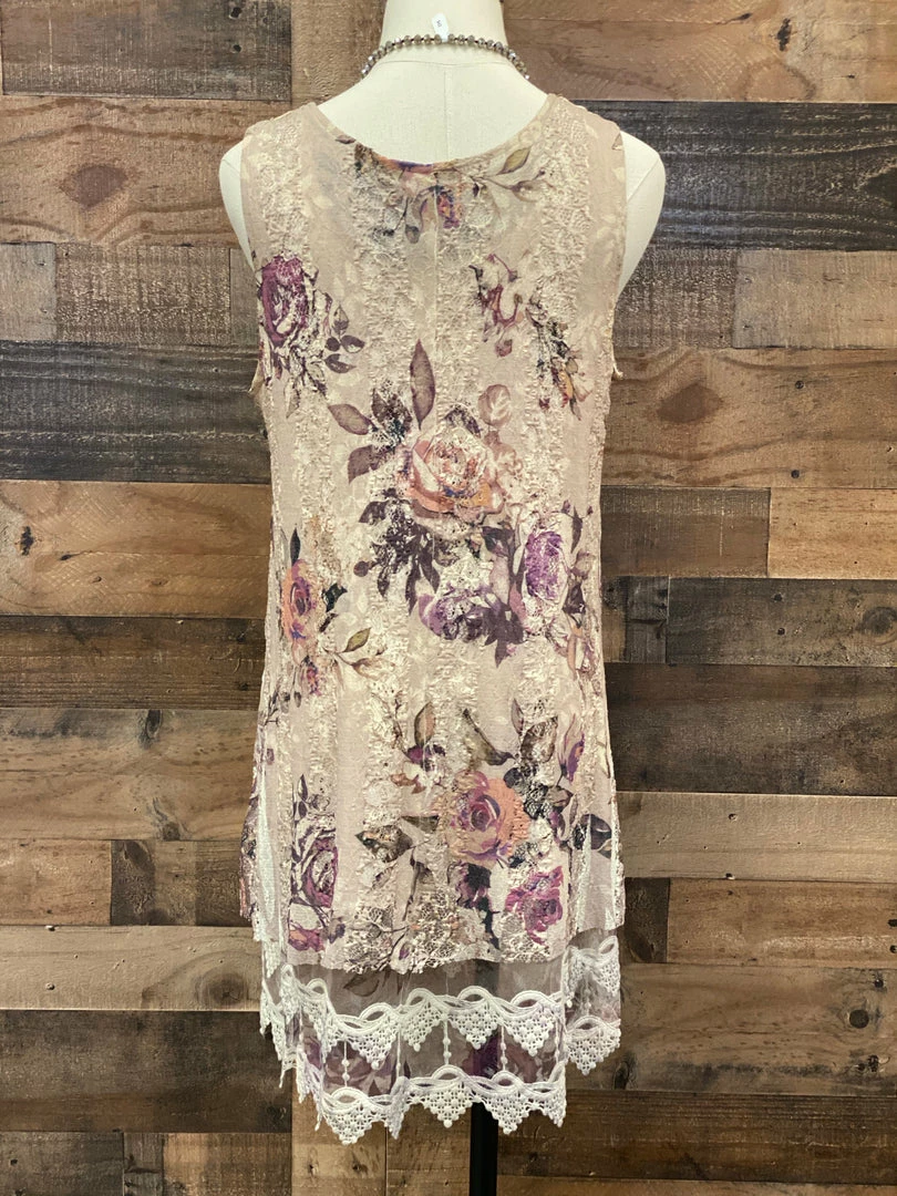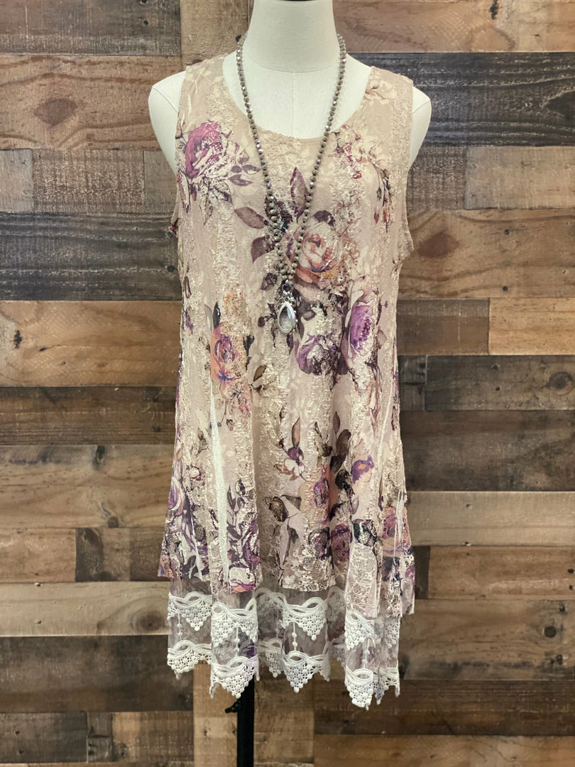 - Beige Lace Tunic With Floral & Lace Overlay